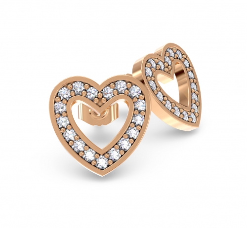 Złote kolczyki serca z brylantami 34 brylanty x 0,06 ct co daje 2ct
