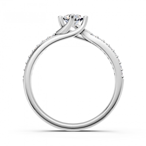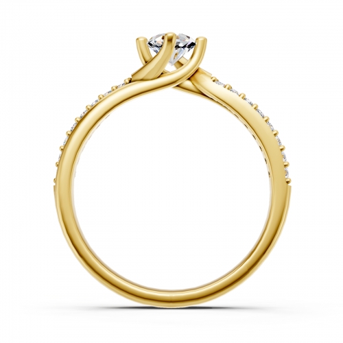 W hipnotyzującym projekcie pierścionka króluje olśniewający owalny brylant, który obejmuje z wdziękiem na podwyższeniu szyna diamentowej obrączki. Szyna rodziela się, tworząc wyrafinowaną wstęgę wokół błyszczącego kamienia centralnego. Idealny pierścionek do wyrażenia wiecznej miłości. Na życzenie wykonamy pierścionek z żółtego, białego lub różowego złota.